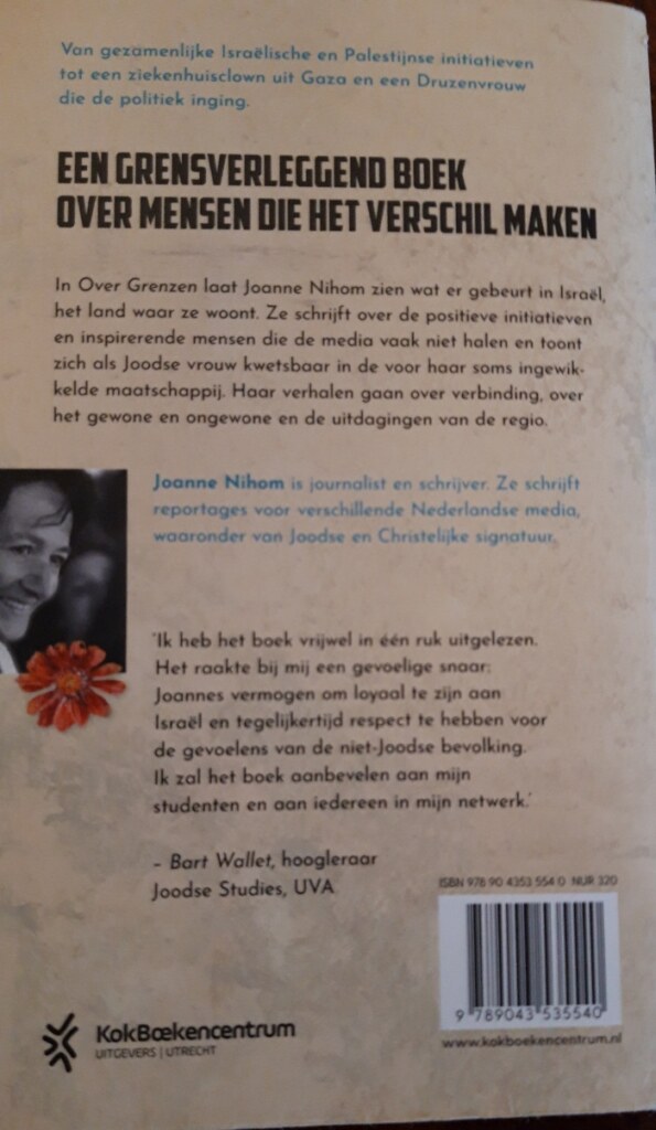 Vooral het laatste boek (Over Grenzen) raakte me. Het is een boeiend boek dat vertelt vanuit een respectvolle en authentieke houding over wat er gebeurt in Israël. Over mensen die het positieve verschil maken. De manier van schrijven van Joanne werkt magnetisch, je wílt steeds verder lezen. Over de vele positieve organisaties die alle volkeren omarmen en met álle volkeren werken.